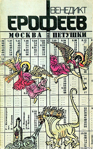 Веничка Ерофеев уже начал свое странствие. Накануне он принял стакан зубровки, а потом - на Каляевской - другой стакан, только уже не зубровки, а кориандровой, за этим последовали еще две кружки жигулевского пива и из горлышка - альб-де-десерт. «Вы, конечно, спросите: а дальше, Веничка, а дальше, что ты пил?» Герой не замедлит с ответом, правда, с некоторым трудом восстанавливая последовательность своих действий: на улице Чехова два стакана охотничьей. А потом он пошел в Центр, чтобы хоть раз на Кремль посмотреть, хотя знал, что все равно попадет на Курский вокзал. Но он и на Курский не попал, а попал в некий неведомый подъезд, из которого вышел - с мутной тяжестью в сердце, - когда рассвело. С патетическим надрывом он вопрошает: чего же больше в этой ноше - паралича или тошноты? «О, эфемерность! О, самое бессильное и позорное время в жизни моего народа - время от рассвета до открытия магазинов!» Веничка, как он сам говорит, не идет, а влечется, преодолевая похмельную тошноту, на Курский вокзал, откуда отправляется электричка в желанные Петушки. На вокзале он заходит в ресторан, и душа его содрогается в отчаянии, когда вышибала сообщает, что спиртного нет. Ею душа жаждет самую малость - всего-то восемьсот граммов хереса. А его за эту самую жажду - при всем его похмельном малодушии и кротости - под белы руки подхватывают и выталкивают на воздух, а следом и чемоданчик с гостинцами («О звериный оскал бытия!»). Пройдут еще два «смертных» часа до отправления, которые Веничка предпочитает обойти молчанием, и вот он уже на некотором подъеме: чемоданчик его приобрел некоторую увесистость. В нем - две бутылки кубанской, две четвертинки российской и розовое крепкое. И еще два бутерброда, потому что первую дозу Веничка без закуски не может. Это потом вплоть до девятой он уже спокойно без нее обходится, а вот после девятой опять нужен бутерброд. Веничка откровенно делится с читателем тончайшими нюансами своего способа жизни, то бишь пития, плевал он на иронию воображаемых собеседников, в число которых попадают то Бог, то ангелы, то люди. Больше всего в его душе, по его признанию, «скорби» и «страха» и еще немоты, каждый день с утра его сердце источает этот настой и купается в нем до вечера. И как же, зная, что «мировая скорбь» вовсе не фикция, не пить кубанскую?