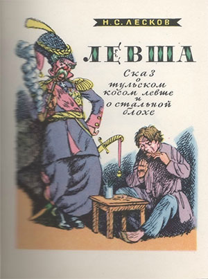 В самой последней кунсткамере, среди собранных со всего света «нимфозорий», государь покупает блоху, которая хотя и мала, но умеет «дансе» танцевать. Вскоре у Александра «от военных дел делается меланхолия», и он возвращается на родину, где умирает. Взошедший на престол Николай Павлович блоху ценит, но, так как не любит уступать иностранцам, отправляет Платова вместе с блохой к тульским мастерам. Платова «и с ним всю Россию» вызываются поддержать трое туляков. Они отправляются поклониться иконе святого Николая, а затем запираются в домике у косого Левши, но, даже закончив работу, отказываются выдать Платову «секрет», и ему приходится везти Левшу в Петербург. Николай Павлович и его дочь Александра Тимофеевна обнаруживают, что «брюшная машинка» в блохе не действует. Разгневанный Платов казнит и треплет Левшу, а тот в порче не признается и советует поглядеть на блоху в самый сильный «мелкоскоп». Но попытка оказывается неудачной, и Левша велит «всего одну ножку в подробности под микроскоп подвести». Сделав это, государь видит, что блоха «на подковы подкованная». А Левша добавляет, что при лучшем «мелкоскопе» можно было бы увидеть, что на всякой подкове «мастерово имя» выставлено. А сам он выковывал гвоздики, которые никак разглядеть невозможно. Платов просит у Левши прошения. Левшу обмывают в «Туляновских банях», остригают и «обформировывают», будто на нем есть какой-нибудь «жалованный чин», и отправляют отвезти блоху в подарок англичанам. В дороге Левша ничего не ест, «поддерживая» себя одним вином, и поет на всю Европу русские песни. На расспросы англичан он признается: «Мы в науках не зашлись, и потому блоха больше не танцует, только своему отечеству верно преданные». Остаться в Англии Левша отказывается, ссылаясь на родителей и русскую веру, которая «самая правильная». Ничем его англичане не могут прельстить, далее предложением жениться, которое Левша отклоняет и неодобрительно отзывается об одежде и худобе англичанок. На английских заводах Левша замечает, что работники в сытости, но больше всего его занимает, в каком виде содержатся старые ружья. Вскоре Левша начинает тосковать и, несмотря на приближающуюся бурю, садится на корабль и не отрываясь смотрит в сторону России. Корабль выходит в «Твердиземное море», и Левша заключает пари со шкипером, кто кого перепьет. Пьют они до «рижского Динаминде», и, когда капитан запирает спорщиков, уже видят в море чертей. В Петербурге англичанина отправляют в посольский дом, а Левшу — в квартал, где у него требуют документ, отбирают подарки, а после отвозят в открытых санях в больницу, где «неведомого сословия всех умирать принимают». На другой день «аглицкий» полшкипер «куттаперчевую» пилюлю проглатывает и после недолгих поисков находит своего русского «камрада». Левша хочет сказать два слова государю, и англичанин отправляется к «графу Клейнмихелю», но полшпикеру не нравятся его слова о Левше: «хоть шуба овечкина, так душа человечкина». Англичанина направляют к казаку Платову, который «простые чувства имеет». Но Платов закончил службу, получил «полную пуплекцию» и отсылает его к «коменданту Скобелеву». Тот посылает к Левше доктора из духовного звания Мартын-Сольского, но Левша уже «кончается», просит передать государю, что у англичан ружья кирпичом не чистят, а то они стрелять не го